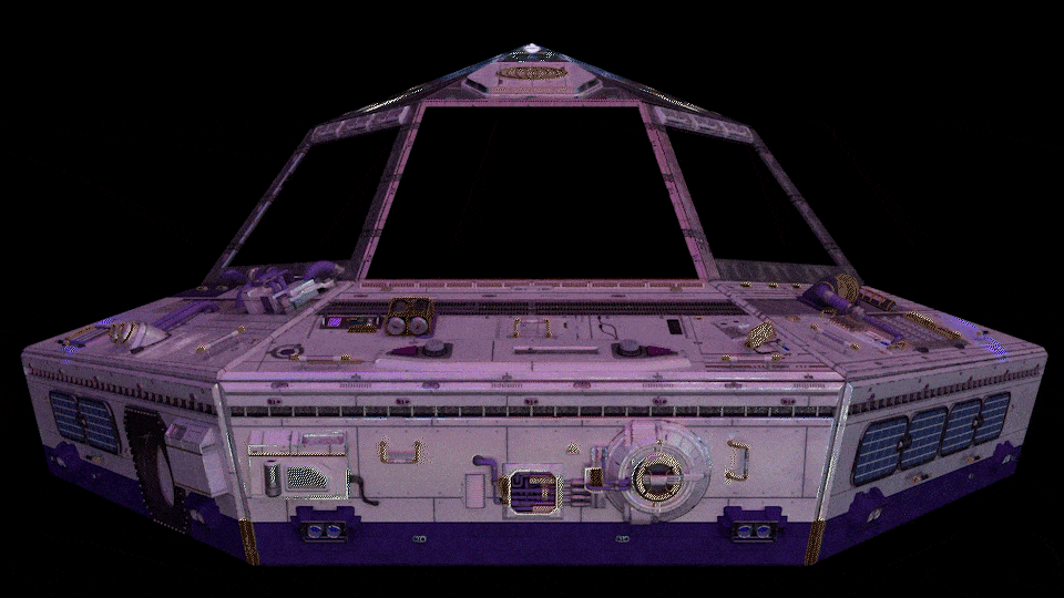 I created a retro-futuristic 3D model to bring the wooden structure to life throught projection mapping.