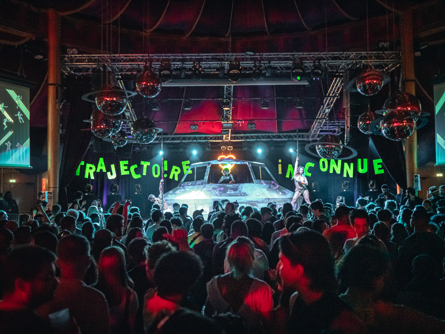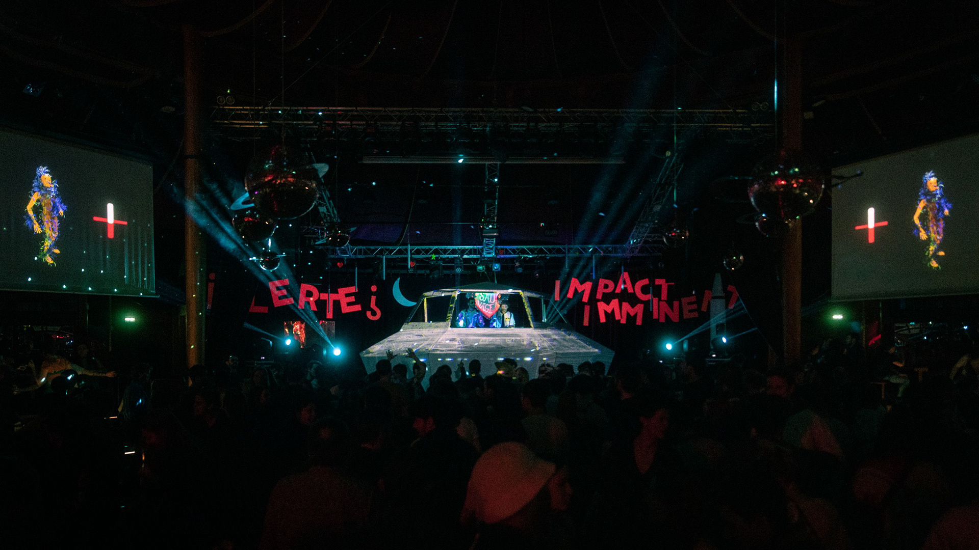Thanks to my previous collaboration with Esprit Léger, I was invited to join the Amour Cosmique project as a VJ, a series of electronic music events with a space-inspired theme. The team from Amour Cosmique created a DJ booth over five meters long, shaped like a flying saucer.