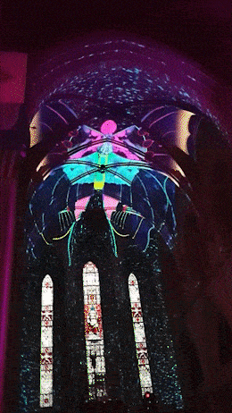 I handled the mapping and VJing inside the cathedral’s nave, designing visuals that harmonized with the architecture, and ensuring everything was tailored specifically for the electronic vibe of the event.
